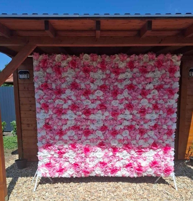 Mobil virágfal, melyet használhatunk fotóháttérként is, és az esküvői szertartás háttereként is. A virágfal két méretben érhető el, melyet igény esetén összekapcsolunk.